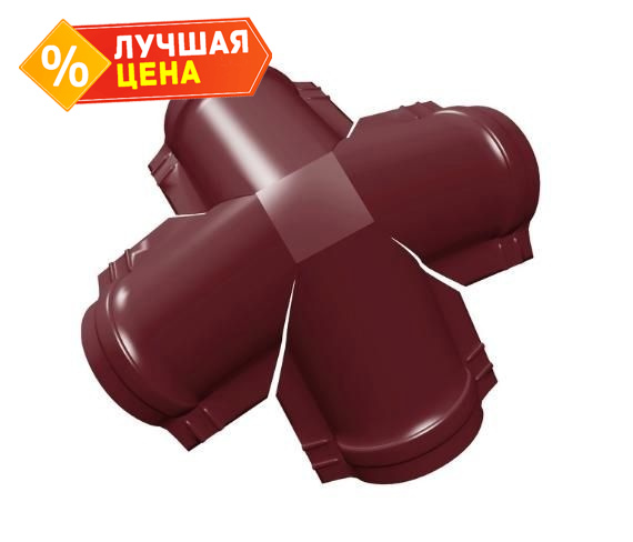Четверник конька полукруглого Quarzit lite с пленкой RAL 3005 красное вино