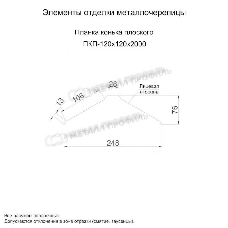 • Планка конька плоского 120х120х2000 (ПЭ-01-1014-0.45) не ржавеет.