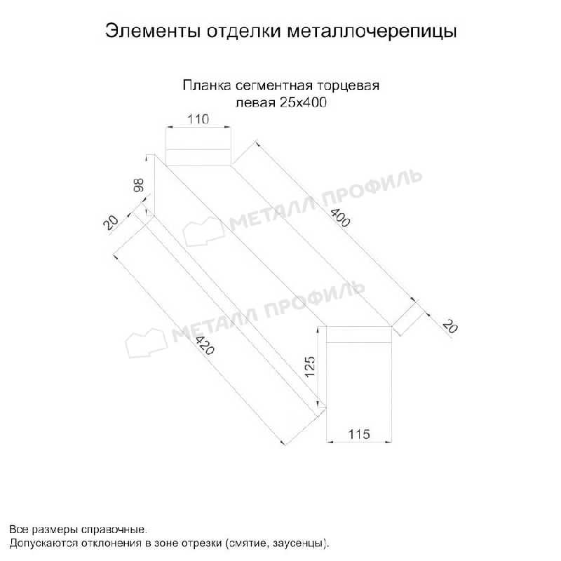 Планка сегментная торцевая левая 400 мм (PURETAN-20-RR32-0.5)