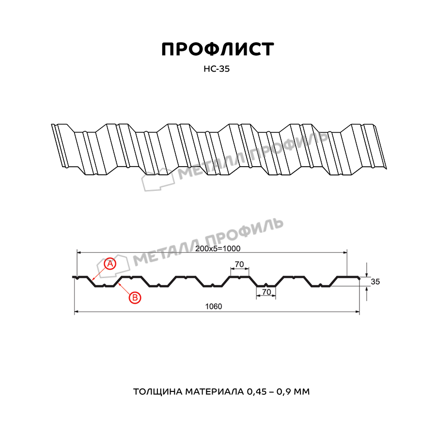 Профиль НС-35 имеет толщину 0,45 мм, что обеспечивает прочность и долговечность конструкции. Он изготовлен из металла VikingMP®, который отличается высокой стойкостью к коррозии и атмосферным воздействиям.
