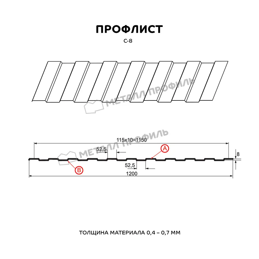 Профлист Металл Профиль С-8 0,45 Цинк Бесцветный | A - это высококачественный строительный материал, предназначенный для использования в различных строительных проектах. Он изготовлен из прочного металла, обработанного специальным цинковым покрытием, которое обеспечивает долговечность и защиту от коррозии. Профиль С-8 имеет уникальную форму, которая обеспечивает прочность и устойчивость к нагрузкам. Он идеально подходит для использования в качестве кровельного материала, фасадной обшивки или ограждения. Благодаря своей гибкости и легкости, он легко монтируется и обеспечивает простоту в установке. Толщина профлиста составляет 0,45 мм, что делает его легким и удобным в обработке. Бесцветное цинковое покрытие придает ему эстетически привлекательный внешний вид, который сохраняется на протяжении долгого времени. Профлист Металл Профиль С-8 0,45 Цинк Бесцветный | A - это надежный и долговечный материал, который подходит для использования в различных строительных проектах. Он обеспечивает защиту от внешних воздействий и придает зданию элегантный и современный вид.