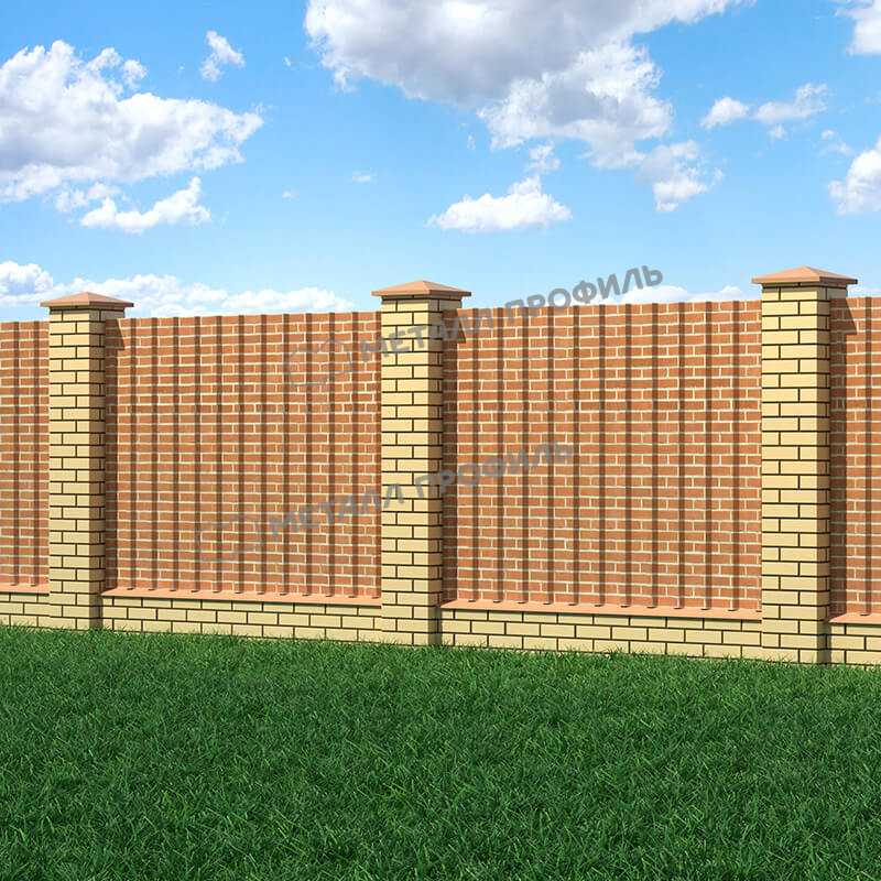 Профиль имеет форму кирпича, что придает зданию эстетичный и современный вид. Он идеально подходит для использования на фасадах зданий, крышах, заборах и других конструкциях.