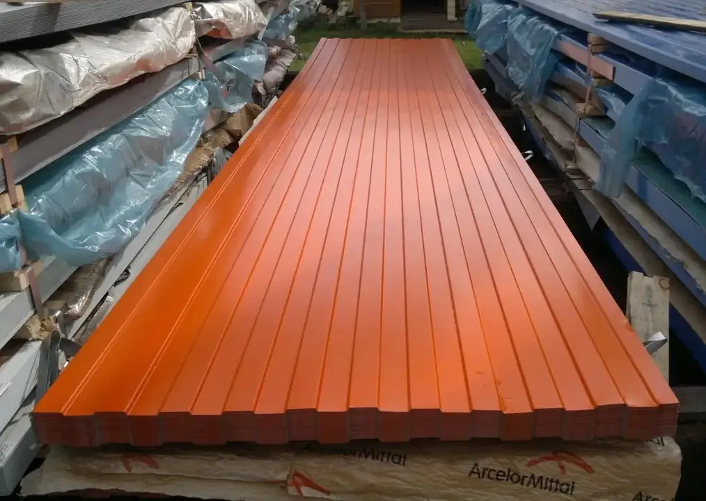 Профнастил С8А 0,45 PE с пленкой RAL 2004 оранжевый