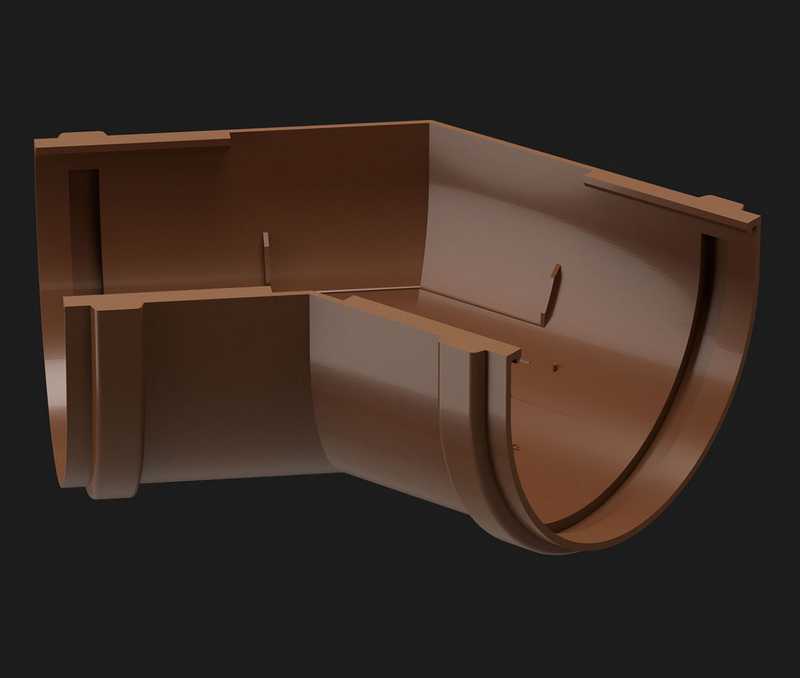 Угловые элементы устанавливаются как на внешних, так и на внутренних углах кровли и предназначены для соединения желобов