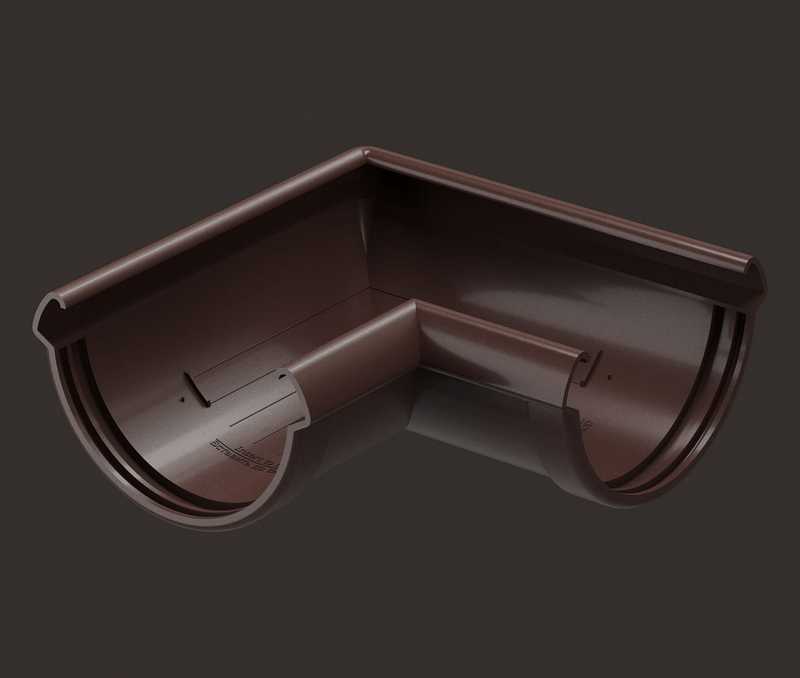 Угловые элементы устанавливаются как на внешних, так и на внутренних углах кровли и предназначены для соединения желобов.